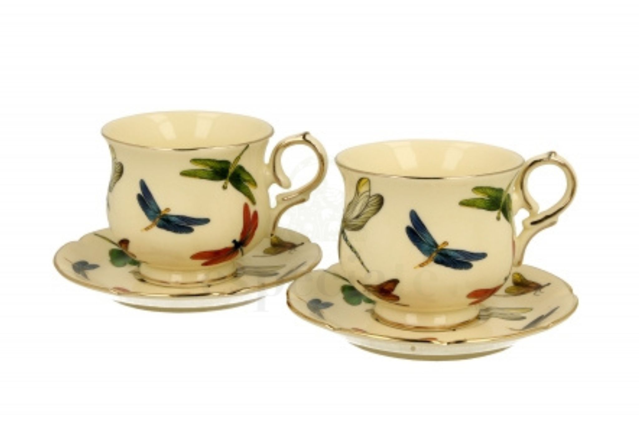 Una colección de la porcelana de más alta calidad, que destaca por sus decoraciones en oro y dibujos de mariposas de vivos colores que destacan en el elegante fondo color crema. Todo ello empaquetado en una elegante caja a juego con el color de la porcelana.
