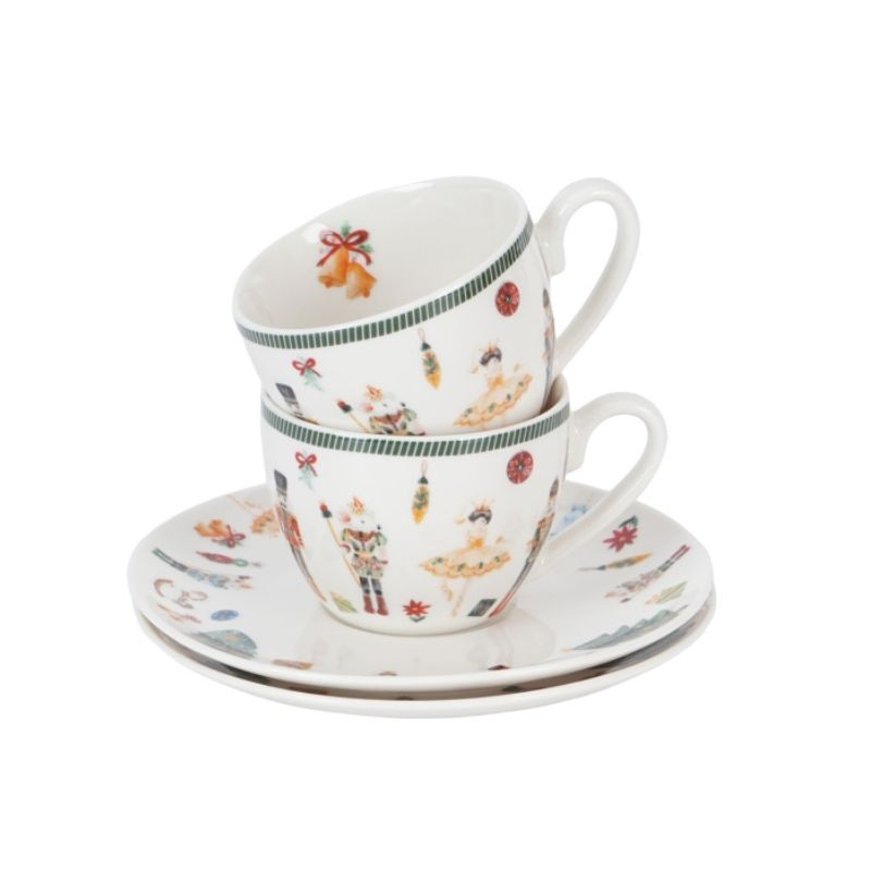 Sumérgete en el espíritu festivo con el encantador Juego de 2 Tazas Christmas Nutcracker de la reconocida marca Duo. Este set es la combinación ideal de funcionalidad, belleza y espíritu navideño, perfecto para disfrutar de tu chocolate caliente, té o café con un toque de magia invernal.