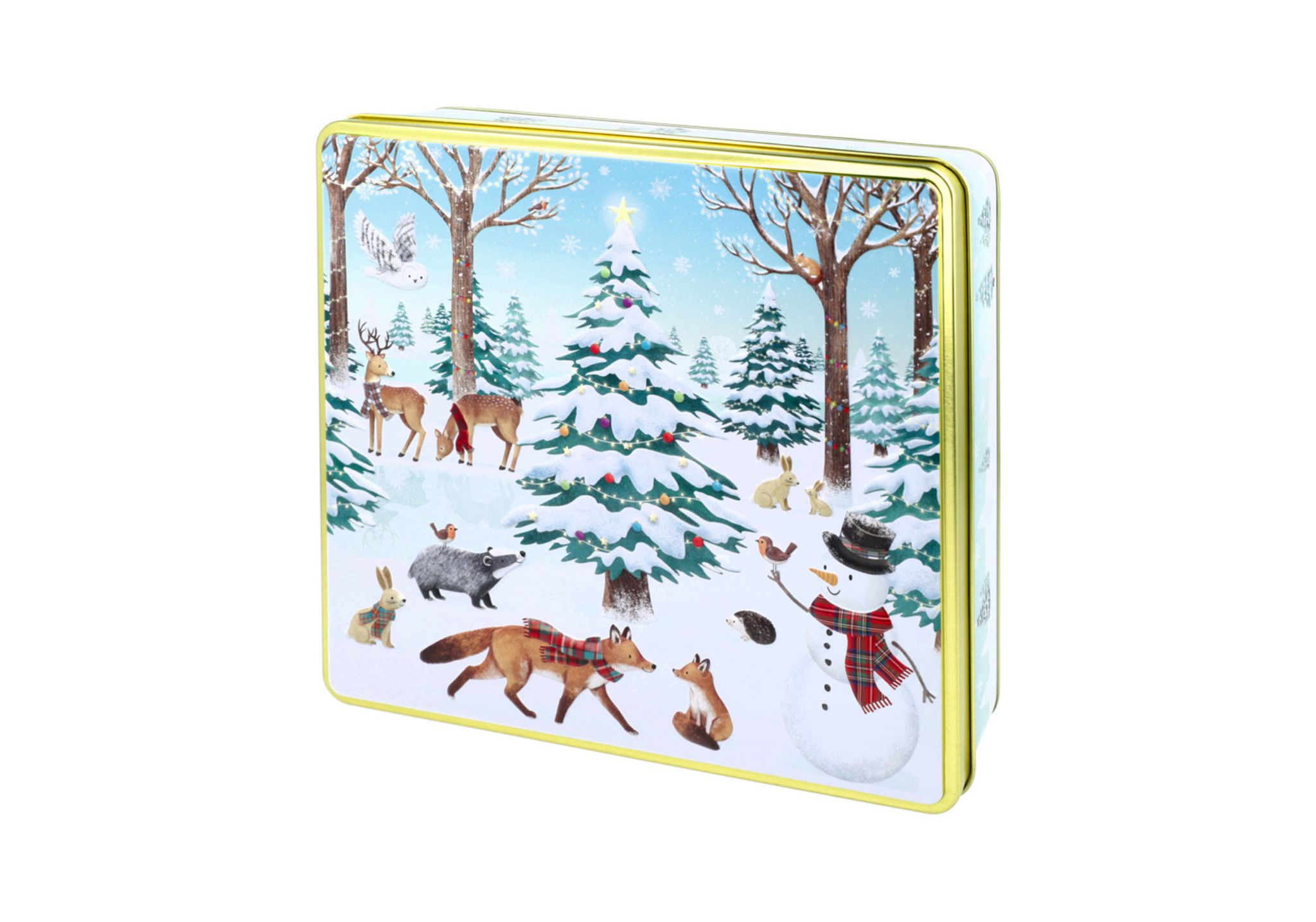 La lata, con su entrañable diseño de un bosque nevado en Navidad, es un detalle que perdura mucho después de que los bombones se hayan disfrutado. Es ideal para: