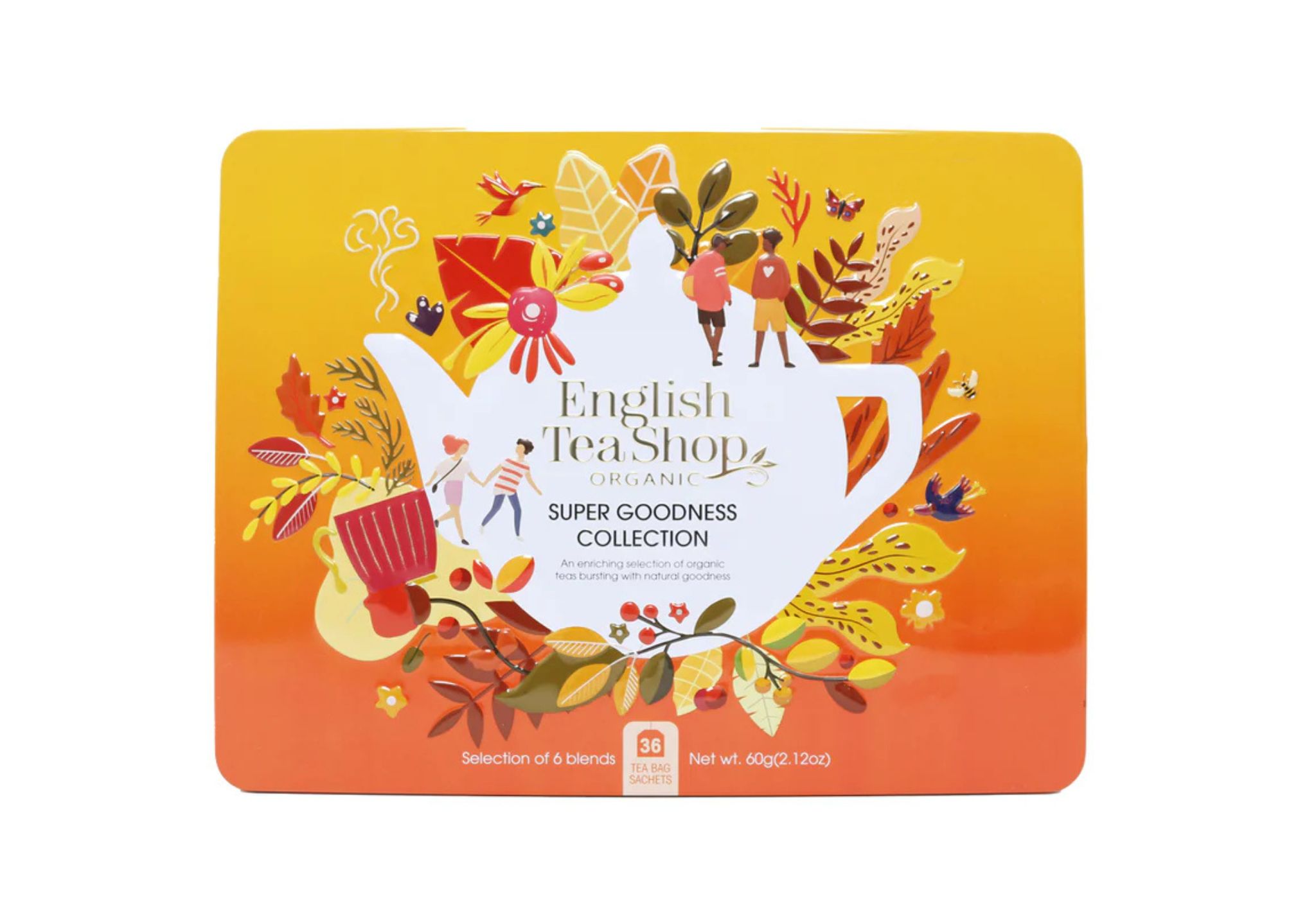Descubre la Super Goodness Collection de English Tea Shop, la selección de infusiones más innovadora y vibrante, diseñada para los amantes del té que buscan combinaciones atrevidas y los beneficios de los superalimentos.