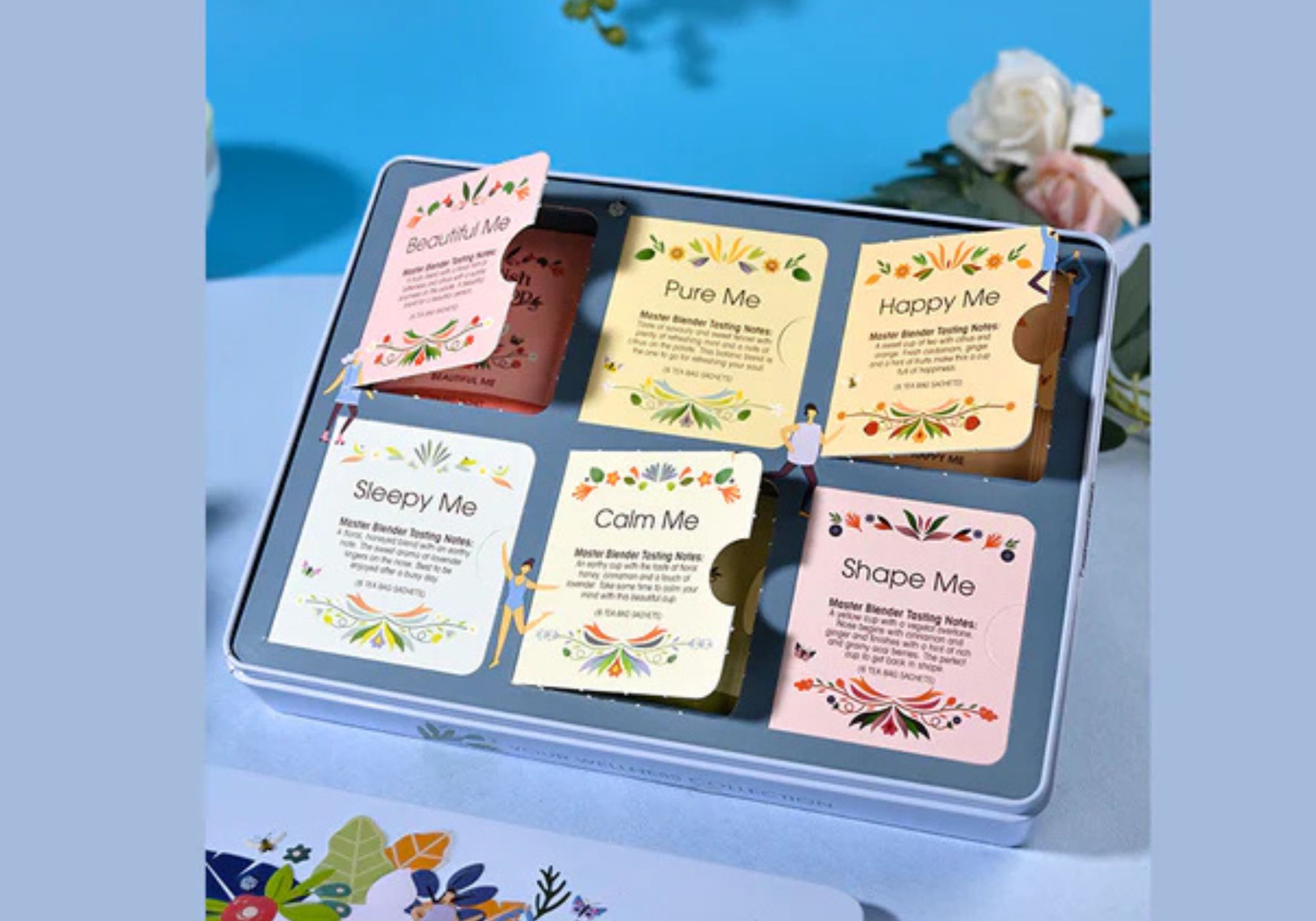 Esta exclusiva colección de tés bio ha sido cuidadosamente mezclada con los mejores ingredientes naturales para apoyar tu rutina diaria. Cada lata contiene 6 sobres de cada una de las 6 variedades, creando una deliciosa travesía de sabores y beneficios: